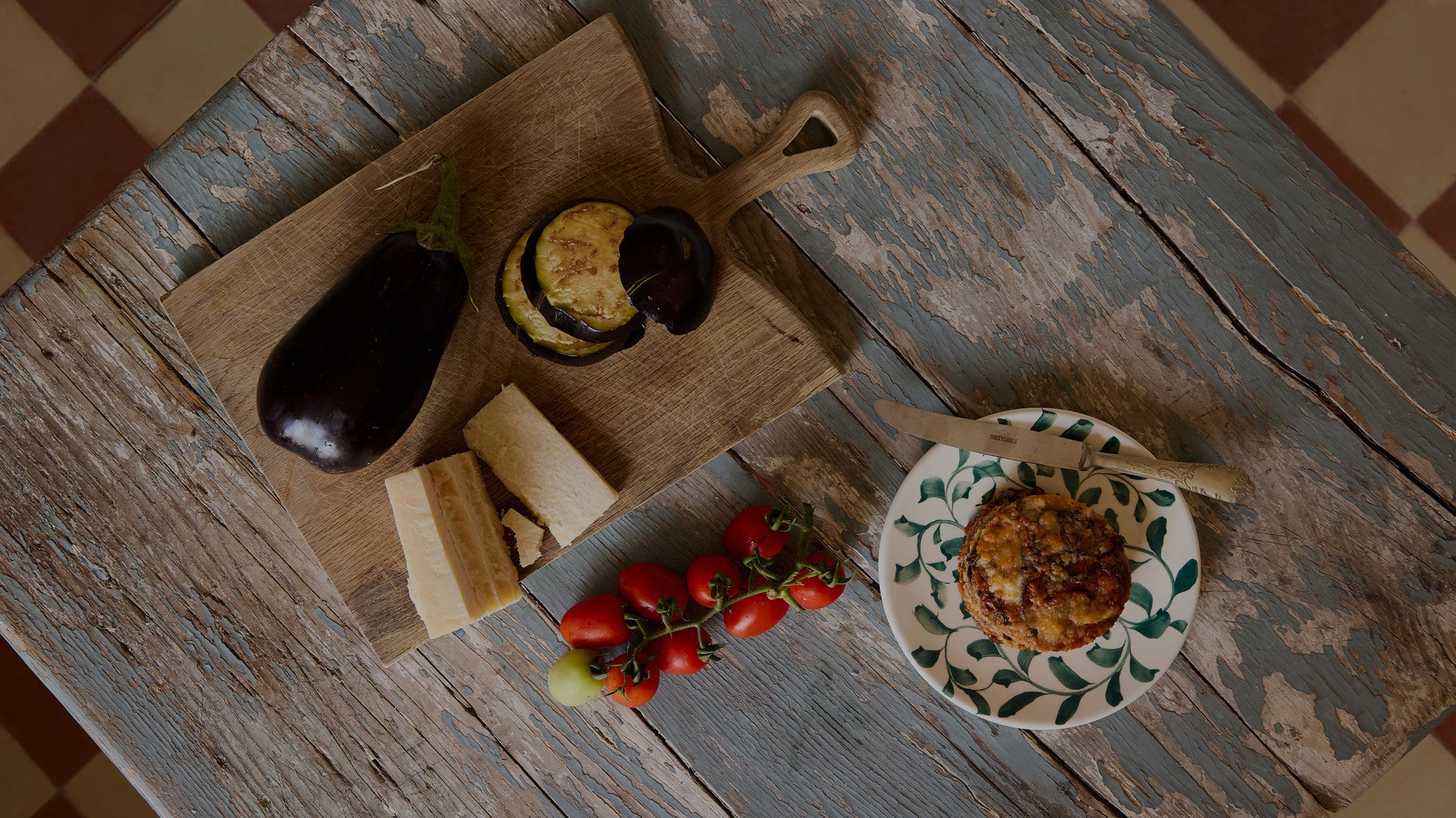 Slice the aubergines into 1cm rounds. Lightly salt them and leave for 20–30 minutes to draw out moisture, then pat dry.