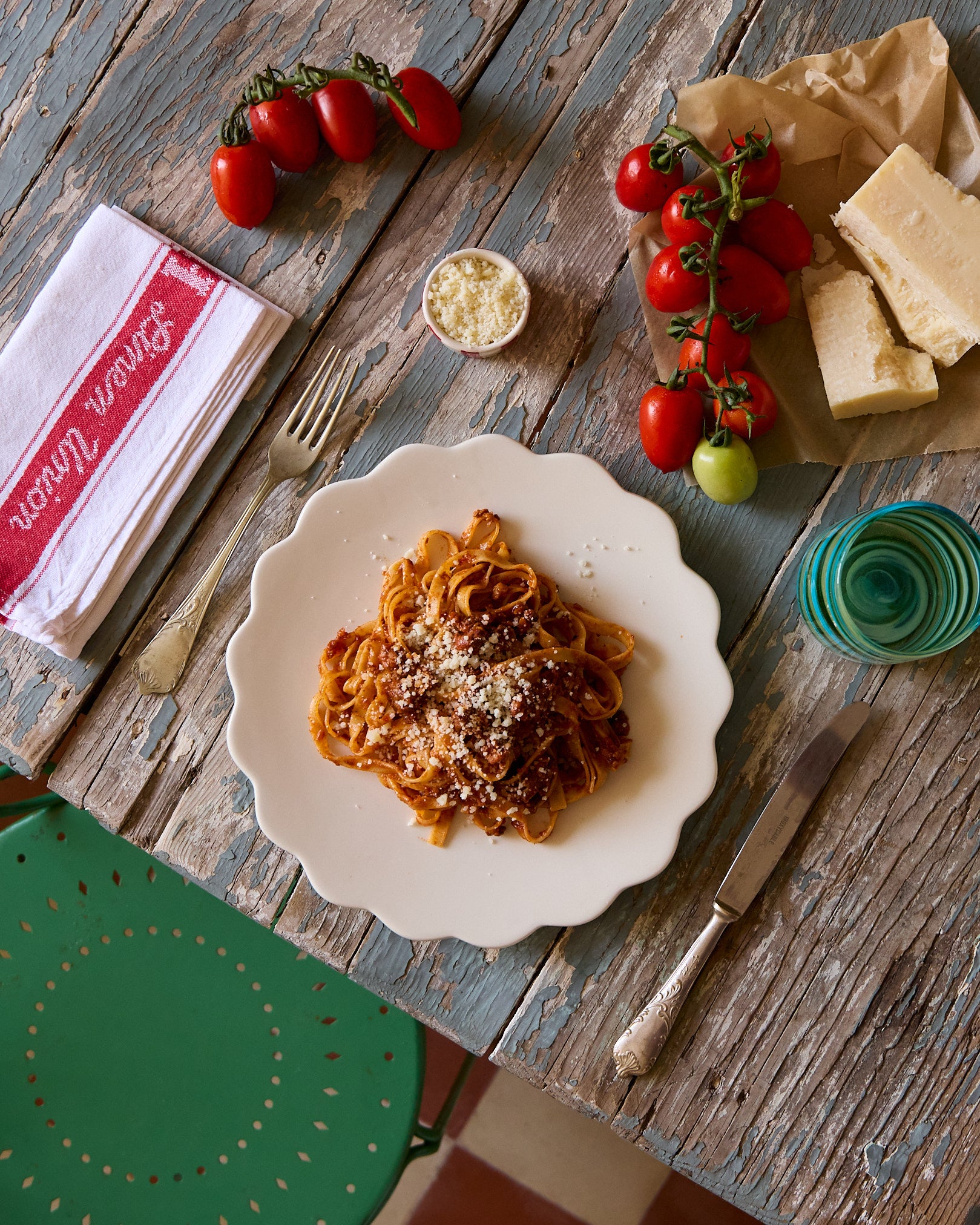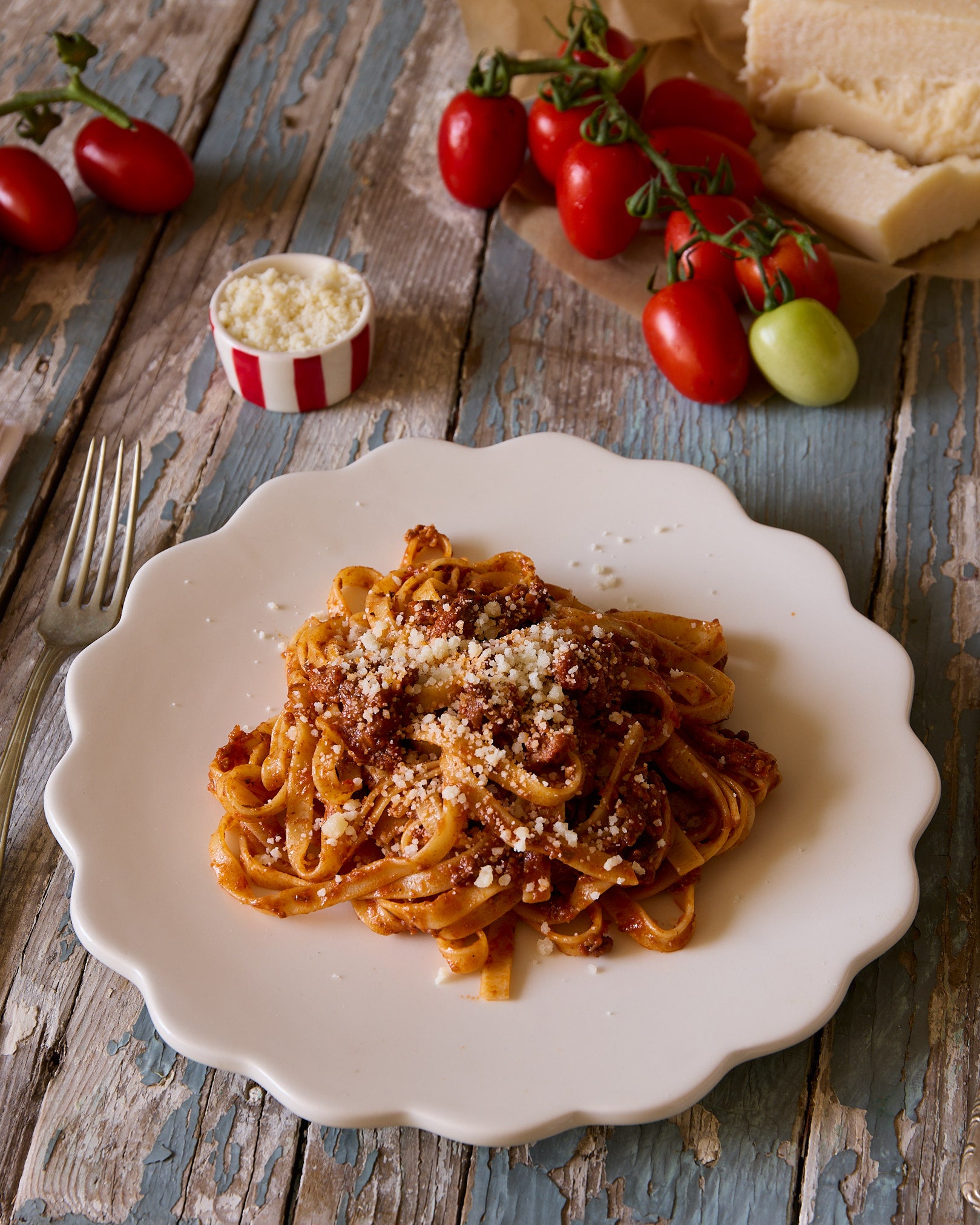 Transfer the pasta directly into the ragù and toss well, adding a splash of pasta water if needed so the sauce coats the ribbons evenly rather than sitting underneath.